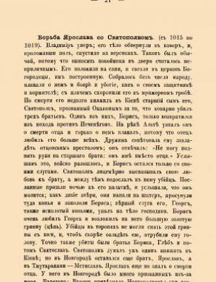 Анотація: На основі тексту літописного зведення «Повість временних літ» висвітлено життя й діяльність видатного державного й культурного діяча, великого князя київського, князя ростовського й новгородського Ярослава Мудрого. Висвітлено події, починаючи від смерті Володимира Святославича; розказано про боротьбу за Київське князівство між його синами; розглянуто основні досягнення Ярослава Мудрого. Публікація є розділом книги педагога, перекладача, дитячого письменника Василя Водовозова.