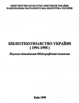 Анотація: Науково-допоміжний бібліографічний покажчик містить інформацію про книги (монографії, підручники, популярні видання), статті з наукових збірників, журналів, газет, видань, що продовжуються, автореферати дисертацій, рецензії з питань бібліотекознавства, що вийшли в 1991–1995 роках. Матеріал згруповано в систематичному порядку. Надруковано іменний покажчик і абетковий покажчик бібліотек та інших організацій, відомості про видання яких вміщено в покажчику.