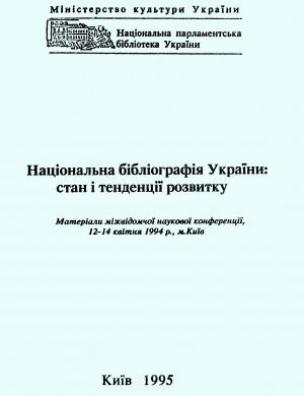 Бібліографічний опис: Національна бібліографія України: стан і тенденції розвитку [Електронна копія] : матеріали міжвідом. наук. конф., 12–14 квіт. 1994 р., м. Київ / Нац. парлам. б-ка України ; [відп. ред. В. О. Кононенко]. Електрон. текст. дані (1 файл : 121 Мб). Київ : Нац. парлам. б-ка України, 1995 (Київ: НБУ ім. Ярослава Мудрого, 2018).