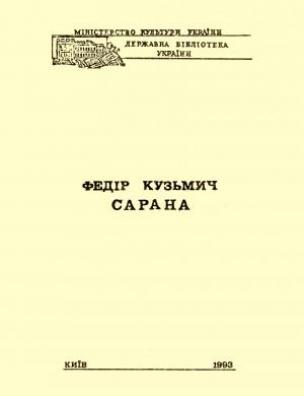 Оригінал друкованого документу зберігається в НБУ ім. Ярослава Мудрого: Федір Кузьмич Сарана : біобібліогр. покажч. / М-во культури України, Держ. б-ка України ; [уклад.: Н. Ф. Королевич, Ю. С. Зубець]. — Київ : Держ. б-ка України, 1993. — 26 с.