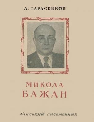 Микола Бажан [Електронна копія] : літ.-критич. нарис / А. Тарасенков. Електрон. текст. дані (1 файл : 29,9 Мб). Київ : Рад. письменник, 1949 (Київ: НБУ ім. Ярослава Мудрого, 2019).
