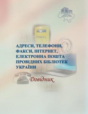 Анотація: У довіднику, підготованому Національною бібліотекою України імені Ярослава Мудрого, вміщено поштові адреси, телефони, факси, адреси сайтів та електронної пошти провідних бібліотек України. Подано інформацію щодо Міністерства культури України, національні та державні бібліотеки, а також партнерів бібліотек. Дані представлені станом на 30 січня 2019 року.