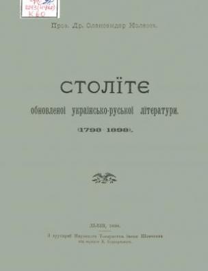 Століття обновленої українсько-руської літератури [Електронна копія] : (1798–1898) / проф. др. Олександер Колесса. Електрон. текст. дані (1 файл : 26,6 Мб). Львів : З друк. Наук. т-ва ім. Шевченка, 1898 (Київ: НБУ ім. Ярослава Мудрого, 2019).