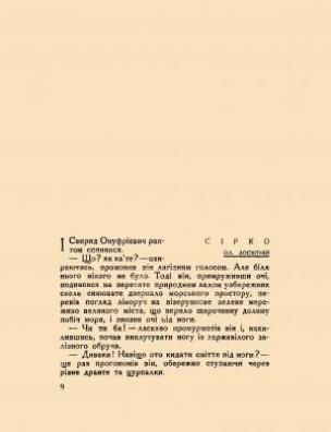 Анотація: Новелу українського письменника та політичного діяча доби Розстріляного відродження Олеся Досвітнього (псевдонім Олександра Скрипаля-Міщенка; 1891–1934) «Сірко», датовану 1928 роком, було опубліковано 1929 року в альманаху «Літературний ярмарок». На героя твору, милого й доброго професора Свирида Онуфрієвича, нападають собаки, в образах яких із сатирою представлено тогочасних критиків.