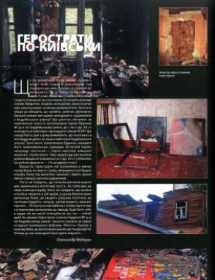 Анотація: Стаття українського мистецтвознавця і громадського діяча Олександра Федорука є реакцією на пожежу в листопаді 2007 року в будинку на Андріївському узвозі, що належав Національній спілці художників України. Вміщено фотографії майстерень після пожежі. Статтю було опубліковано в журналі «Образотворче мистецтво» 2008 року.