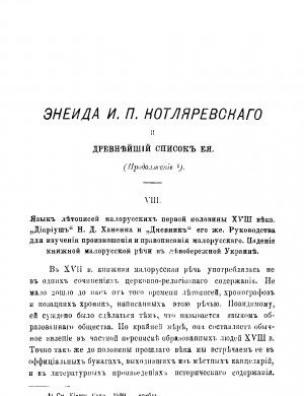Анотація: Однією з найважливіших праць мовознавця і громадського діяча Павла Житецького є дослідження, присвячене аналізу поеми «Енеїда» видатного українського письменника, поета, драматурга, культурного і громадського діяча Івана Котляревського (1769–1838) та її зв’язків з українською літературою XVIII сторіччя. Робота публікувалася частинами у 1899–1900 роках у журналі «Киевская старина». Представлена частина містить огляд історії розвитку української мови та літератури у XVIII сторіччі.