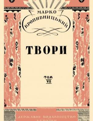 Твори / М. Кропивницький. [Київ] : Держвидав України, 1929– . (Бібліотека українських класиків). Т. 7 : Електрон. текст. дані (1 файл : 258 Мб). 1930 (Київ: НБУ ім. Ярослава Мудрого, 2019).