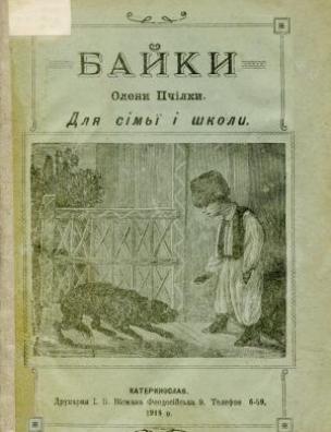 Оригінал друкованого документу зберігається в НБУ для дітей: Пчілка О. Байки Олени Пчілки : для сім’ї і шк. — Вид. 2-ге. — Катеринослав : Слово, 1918. – 32 с.