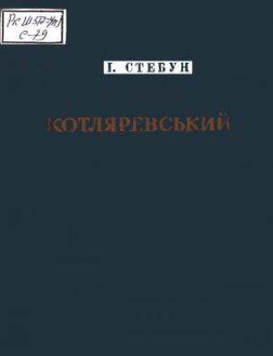Оригінал друкованого документу зберігається в НБУ ім. Ярослава Мудрого: Стебун І. І. І. П. Котляревський : критико-біогр. нарис / І. І. Стебун ; Акад. наук УРСР, Ін-т укр. літ. ім. Т. Г. Шевченка. — Київ : Держ. літ. вид-во, 1938. — 168 с.
