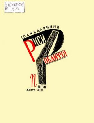 Риси обличчя [Електронна копія] : поезії / Іван Калянник. Електрон. текст. дані (1 файл : 9,67 Мб). Харків : Літ. і мистецтво, 1931 (Київ: НБУ ім. Ярослава Мудрого, 2020).
