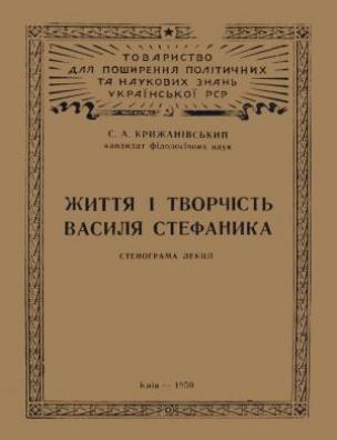 Життя і творчість Василя Стефаника [Електронна копія] : стенограма лекції / С. А. Крижанівський ; Т-во для поширення політ. і наук. знань Укр. РСР. Електрон. текст. дані (1 файл : 38,0 Мб). Київ : Київ. обл. друк., 1950 (Київ: НБУ ім. Ярослава Мудрого, 2020).