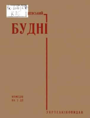 Будні [Електронна копія] : комедія на 3 дії / Кость Кошевський. Електрон. текст. дані (1 файл : 47,2 Мб). Київ : Укртеакіновидав, 1930 (Київ: НБУ ім. Ярослава Мудрого, 2020).