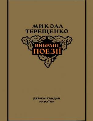 Вибрані поезії, 1917–1948 [Електронна копія] / Микола Терещенко. Електрон. текст. дані (1 файл : 57,7 Мб). Київ : Держ. вид-во худож. літ., 1949 (Київ: НБУ ім. Ярослава Мудрого, 2020).