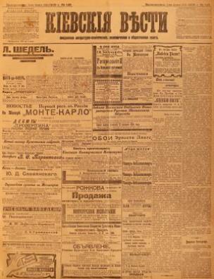Бібліографічний опис: Киевские вести [Електронна копія] : ежеднев. лит.-полит., эконом. и обществ. газ. Киев : Тип. С. Г. Слюсаревского, 1908 (Київ : НБУ ім. Ярослава Мудрого). № 146 : Воскресенье, 1 июня (14). Електрон. текст. дані (1 файл : 67,5 Мб). 1908 (Київ: НБУ ім. Ярослава Мудрого, 2020).