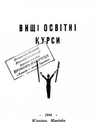Бібліографічний опис: Вищі освітні курси [Електронна копія]. Електрон. текст. дані (1 файл : 57,0 Мб). Winnipeg : Manitoba, 1944 (Луцьк: ВДОУНБ імені Олени Пчілки, 2020).
