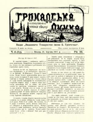 Бібліографічний опис: Громадська думка [Електронна копія] : часопис полонених українців у Вецлярі / видає ”Видавниче Товариство імені Б. Грінченка”. Вецляр : Друк. ”Союза Визволення України”, 1915 (Київ : НБУ ім. Ярослава Мудрого). Ч. 16 (63) (20 берез.) : Електрон. текст. дані (1 файл : 27,03 Мб). 1917 (Київ: НБУ ім. Ярослава Мудрого, 2021).