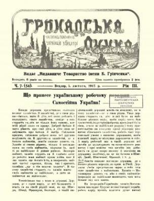 Бібліографічний опис: Громадська думка [Електронна копія] : часопис полонених українців у Вецлярі / видає ”Видавниче Товариство імені Б. Грінченка”. Вецляр : Друк. ”Союза Визволення України”, 1915 (Київ : НБУ ім. Ярослава Мудрого). Ч. 7 (54) (5 лют.) : Електрон. текст. дані (1 файл : 36,4 Мб). 1917 (Київ: НБУ ім. Ярослава Мудрого, 2021).