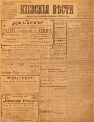 Бібліографічний опис: Киевские вести [Електронна копія] : ежеднев. лит.-полит., эконом. и обществ. газ. Киев : Тип. С. Г. Слюсаревского, 1908 (Київ : НБУ ім. Ярослава Мудрого). № 179 : Воскресенье, 6 июля (19). Електрон. текст. дані (1 файл : 32,9 Мб). 1908 (Київ: НБУ ім. Ярослава Мудрого, 2020).