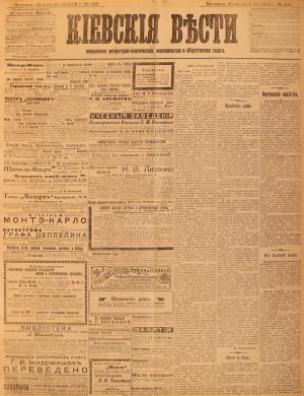 Бібліографічний опис: Киевские вести [Електронна копія] : ежеднев. лит.-полит., эконом. и обществ. газ. Киев : Тип. С. Г. Слюсаревского, 1908 (Київ : НБУ ім. Ярослава Мудрого). № 230 : Пятница, 29 августа (10). Электрон. текст. дан. (1 файл : 6,57 Мб). 1908 (Київ: НБУ ім. Ярослава Мудрого, 2021).