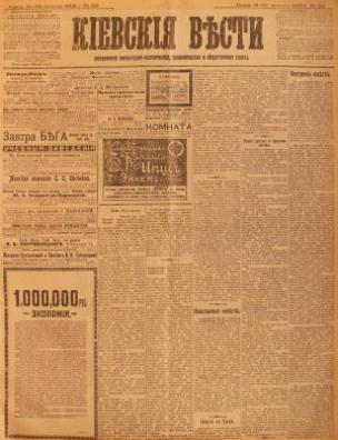 Бібліографічний опис: Киевские вести [Електронна копія] : ежеднев. лит.-полит., эконом. и обществ. газ. Киев : Тип. С. Г. Слюсаревского, 1908 (Київ : НБУ ім. Ярослава Мудрого). № 215 : Среда, 13 августа (26). Электрон. текст. дан. (1 файл : 6,57 Мб). 1908 (Київ: НБУ ім. Ярослава Мудрого, 2021).
