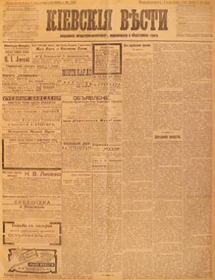 Бібліографічний опис: Киевские вести [Електронна копія] : ежеднев. лит.-полит., эконом. и обществ. газ. Киев : Тип. С. Г. Слюсаревского, 1908 (Київ : НБУ ім. Ярослава Мудрого). № 233 : Понедельник, 1 сентября (14). Електрон. текст. дані (1 файл : 4,74 Мб). 1908 (Київ: НБУ ім. Ярослава Мудрого, 2021).