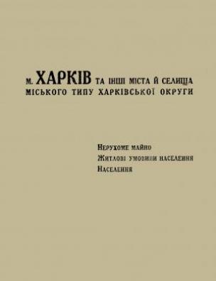 Бібліографічний опис: м. Харків та інші міста й селища міського типу Харківської округи [Електронна копія] : нерухоме майно, житлові умовини населення, населення : матеріали Всесоюз. перепису населення 17 груд. 1926 р. / ЦСУ УСРР, Харків. окруж. стат. бюро. Електрон. текст. дані (1 файл : 50,7 Мб). Харків : [б. в.], 1928 (Київ: НБУ ім. Ярослава Мудрого, 2021).