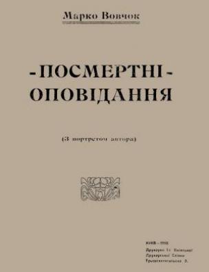 Посмертні оповідання [Електронна копія] : (з портр. авт.) / Марко Вовчок. Електрон. текст. дані (1 файл : 18,3 Мб). Київ : Друк. 1-ої Київ. друк. спілки, 1910 (Київ: НБУ ім. Ярослава Мудрого, 2021).
