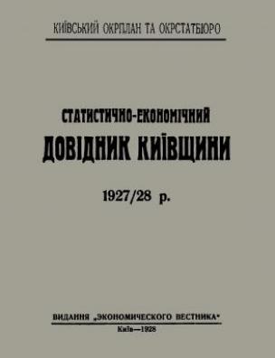 Бібліографічний опис: Статистично-економічний довідник Київщини 1927/28 р. [Електронна копія] / Київ. Окрплан та Окрстатбюро. Електрон. текст. дані (1 файл : 28,9 Мб). Київ : Экон. вестник, 1928 (Київ: НБУ ім. Ярослава Мудрого, 2021).