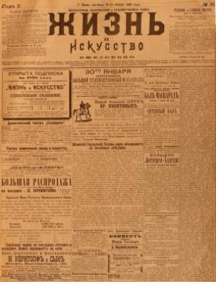 Бібліографічний опис: Жизнь и Искусство [Електронна копія] : ежедн. лит.-полит. и худож. газ. / ред.-изд. М. Е. Краинский. Киев : М. Е. Краинский, 1893 (Київ : НБУ ім. Ярослава Мудрого). № 30 : Пятница, 30-го января. Электрон. текст. дан. (1 файл : 13,1 Мб). 1898 (Київ: НБУ ім. Ярослава Мудрого, 2021).