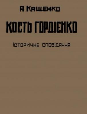 Кость Гордієнко [Електронна копія] : іст. оповідання / А. Кащенко. Електрон. текст. дані (1 файл : 4,21 Мб). [Б. м.] : На чужині, 1948 (Київ: НБУ ім. Ярослава Мудрого, 2021).