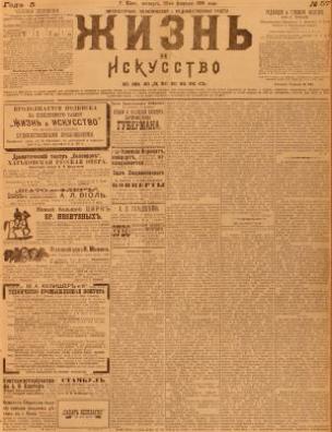 Бібліографічний опис: Жизнь и Искусство [Електронна копія] : ежедн. лит.-полит. и худож. газ. / ред.-изд. М. Е. Краинский. Киев : М. Е. Краинский, 1893 (Київ : НБУ ім. Ярослава Мудрого). № 57 : Черверг, 26-го февраля. Электрон. текст. дан. (1 файл : 13,1 Мб). 1898 (Київ: НБУ ім. Ярослава Мудрого, 2021).