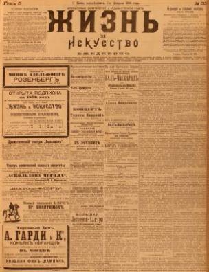 Бібліографічний опис: Жизнь и Искусство [Електронна копія] : ежедн. лит.-полит. и худож. газ. / ред.-изд. М. Е. Краинский. Киев : М. Е. Краинский, 1893 (Київ : НБУ ім. Ярослава Мудрого). № 33 : Понедельник, 2-го февраля. Электрон. текст. дан. (1 файл : 13,1 Мб). 1898 (Київ: НБУ ім. Ярослава Мудрого, 2021).