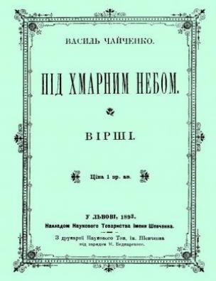 Під хмарним небом [Електронна копія] : вірші / Василь Чайченко (псевд.). Електрон. текст. дані (1 файл : 44,8 Мб). У Львові : Накладом Наук. т-ва ім. Шевченка, 1893 (Київ: НБУ ім. Ярослава Мудрого, 2021).