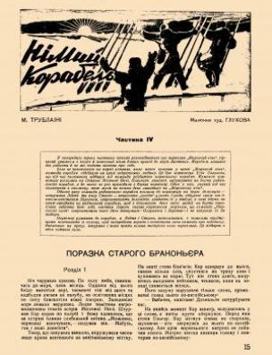 Анотація: У п'ятому номері журналу для дітей "Піонерія" за 1935 рік опубліковано 1-3 розділи частини четвертої роману М. Трублаїні "Німий корабель", який розповідає про надзвичайні пригоди героїчної команди пароплава, що втратив зв'язок із землею і застряг у кризі. У цій частині твору Ерік Олаундсен сповіщає капітана "Морського коня" про напад норвезьців. Команда готується до відсічі і з допомогою Олаунсена викривають перед нападниками їхнього злочинця капітана. Більшість норвезьких моряків переходять на борт "Морського коня", а капітан Ларсен зі своїми прибічниками тікають на острів.