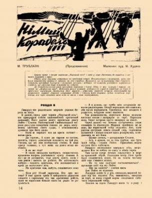 Анотація: У четвертому номері журналу для дітей "Піонерія" за 1935 рік опубліковано 8-11 розділи частини третьої роману "Німий корабель", який розповідає про надзвичайні пригоди героїчної команди пароплава, що втратив зв'язок із землею і застряг у кризі. У цій частині твору делегати від судна "Морськй кінь", потрапляють у полон до норвежців, які, в свою чергу, ідуть рятувати з пароплава капітана Ларсена та Олаунсена. Штурман Лейте і Стьопа звільняються і поспішають до корабля, щоб випередити норвежців і повідомити команду про небезпеку. Вийшовши на кригу, штурман і юнга чують постріли біля свого судна.