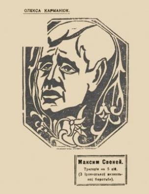 Максим Свеней [Електронна копія] : трагедія на 5 дій : (з ірляндської визвольної боротьби) / Олекса Карманюк. Електрон. текст. дані (1 файл : 50,8 Мб). Каліш : Вид. ”Веселки”, 1923 (Київ: НБУ ім. Ярослава Мудрого, 2022).