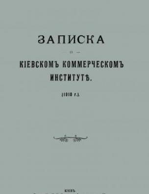 Оригінал друкованого документа зберігається в НБУ ім. Ярослава Мудрого: Записка о Киевском коммерческом институте (1910 г.). — Киев : Тип. И. И. Чоколова, 1910. — 56, 62 с.