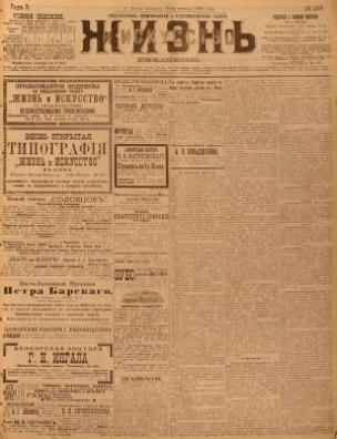 Бібліографічний опис: Жизнь и Искусство [Електронна копія] : ежедн. лит.-полит. и худож. газ. / ред.-изд. М. Е. Краинский. Киев : М. Е. Краинский, 1893 (Київ : НБУ ім. Ярослава Мудрого). № 299 : Черверг, 29-го октября. Электрон. текст. дан. (1 файл : 19,3 Мб). 1898 (Київ: НБУ ім. Ярослава Мудрого, 2022).