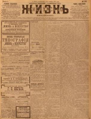 Бібліографічний опис: Жизнь и Искусство [Електронна копія] : ежедн. лит.-полит. и худож. газ. / ред.-изд. М. Е. Краинский. Киев : М. Е. Краинский, 1893 (Київ : НБУ ім. Ярослава Мудрого). № 296 : Понедельник, 26-го октября. Электрон. текст. дан. (1 файл : 19,3 Мб). 1898 (Київ: НБУ ім. Ярослава Мудрого, 2022).