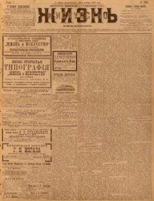 Бібліографічний опис: Жизнь и Искусство [Електронна копія] : ежедн. лит.-полит. и худож. газ. / ред.-изд. М. Е. Краинский. Киев : М. Е. Краинский, 1893 (Київ : НБУ ім. Ярослава Мудрого). № 289 : Понедельник, 19-го октября. Электрон. текст. дан. (1 файл : 19,3 Мб). 1898 (Київ: НБУ ім. Ярослава Мудрого, 2022).