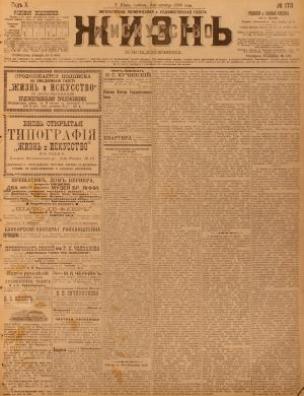 Бібліографічний опис: Жизнь и Искусство [Електронна копія] : ежедн. лит.-полит. и худож. газ. / ред.-изд. М. Е. Краинский. Киев : М. Е. Краинский, 1893 (Київ : НБУ ім. Ярослава Мудрого). № 273 : Суббота, 3-го октября. Электрон. текст. дан. (1 файл : 19,3 Мб). 1898 (Київ: НБУ ім. Ярослава Мудрого, 2022).