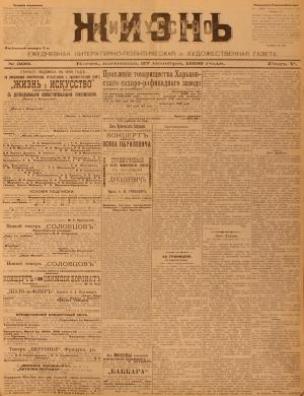 Бібліографічний опис: Жизнь и Искусство [Електронна копія] : ежедн. лит.-полит. и худож. газ. / ред.-изд. М. Е. Краинский. Киев : М. Е. Краинский, 1893 (Київ : НБУ ім. Ярослава Мудрого). № 328 : Пятница, 27-го ноября. Электрон. текст. дан. (1 файл : 19,3 Мб). 1898 (Київ: НБУ ім. Ярослава Мудрого, 2022).