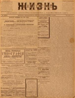 Бібліографічний опис: Жизнь и Искусство [Електронна копія] : ежедн. лит.-полит. и худож. газ. / ред.-изд. М. Е. Краинский. Киев : М. Е. Краинский, 1893 (Київ : НБУ ім. Ярослава Мудрого). № 325 : Вторник, 24-го ноября. Электрон. текст. дан. (1 файл : 19,3 Мб). 1898 (Київ: НБУ ім. Ярослава Мудрого, 2022).