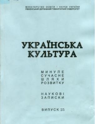 Бібліографічний опис: Українська культура: минуле, сучасне, шляхи розвитку [Електронна копія] : наук. зб. / М-во освіти і науки України, Рівнен. держ. гуманітар. ун-т, Нац. Акад. мистецтв України, Ін-т культурології ; за заг. ред. В. Г. Виткалова. Рівне : РДГУ, 1997 (Рівне : РОУНБ). Вип. 25 :