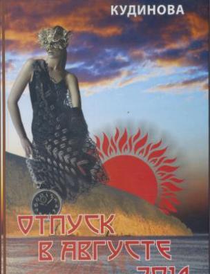 Анотація: Перша книга українською мовою поетеси та прозаїка Тетяни Кудінової «Відпустка в серпні 2014» – це повість, оповідання й есе, у яких автор художнім словом відтворює сьогодення України. Письменниця нагадує читачу про важливість збереження загальнолюдських моральних цінностей. Споглядаючи з висоти прожитих років події в країні, автор намагається застерегти молодь від незворотних помилок, закликає жити, як велить сумління, цінувати традиції й культуру українського народу.