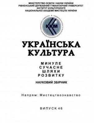 Оригінал друкованого документа зберігається в РОУНБ: Українська культура: минуле, сучасне, шляхи розвитку : наук. зб. Вип. 46 : Напрям: Мистецтвознавство / М-во освіти і науки України, Рівнен. держ. гуманітар. ун-т, Нац. Акад. мистецтв України, Ін-т культурології ; за заг. ред. В. Г. Виткалов. — Рівне : РДГУ, 2023. – 307 с.