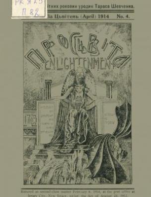 Анотація: Публікація є часописом, виданим товариством “Просвіта” в Америці. Часопис являє собою збірку матеріалів, художніх і публіцистичних на тему розділеності України, москвофільства. Також містить вірші на тему Великодня (часопис виданий 14 квітня), палестинські великодні спогади Ю. Мухи. Окремої уваги заслуговує збірка історичних подій з 1 березня по 27 квітня (різних століть).