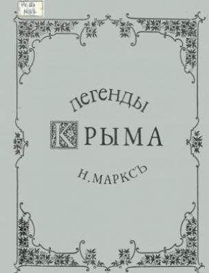 Оригінал друкованого документу зберігається в НБУ ім. Ярослава Мудрого: Маркс Н. Легенды Крыма : [комплект из 3-х вып.]. Вып. 3 / [Н. Маркс, И. Захаров, Н. Агапьева]. / Н. Маркс. — Факсим. изд. — Симферополь : Таврида, 1990. — 40, [1] с., включ. обл. : ил.