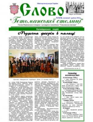 Анотація: Представлене газетне видання Батуринського історико-культурного заповідника «Гетьманська столиця» виходить раз на два місяці і розповсюджується безкоштовно. Мета «Слова» – привернути увагу до вивчення історії Батурина, ознайомити широкий загал зі збирацькою, науковою, популяризаторською роботою, яку впродовж двадцяти років здійснює колектив заповідника.