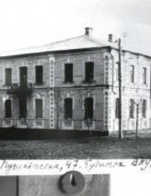 Анотація: На фото зображено будинок у м. Житомирі, в якому знаходилося вище початкове училище де учителював О. П. Довженко у 1914–1917 роках.